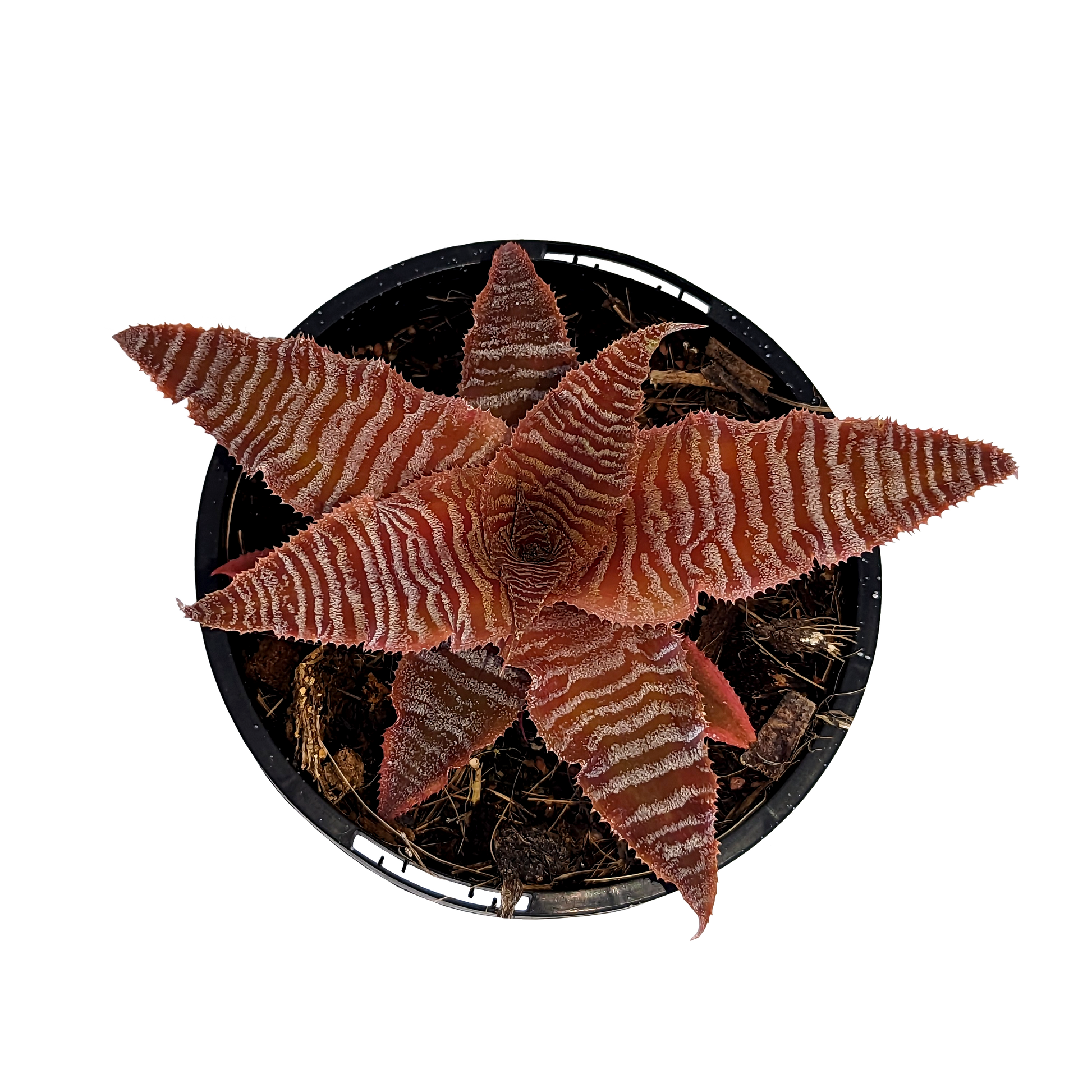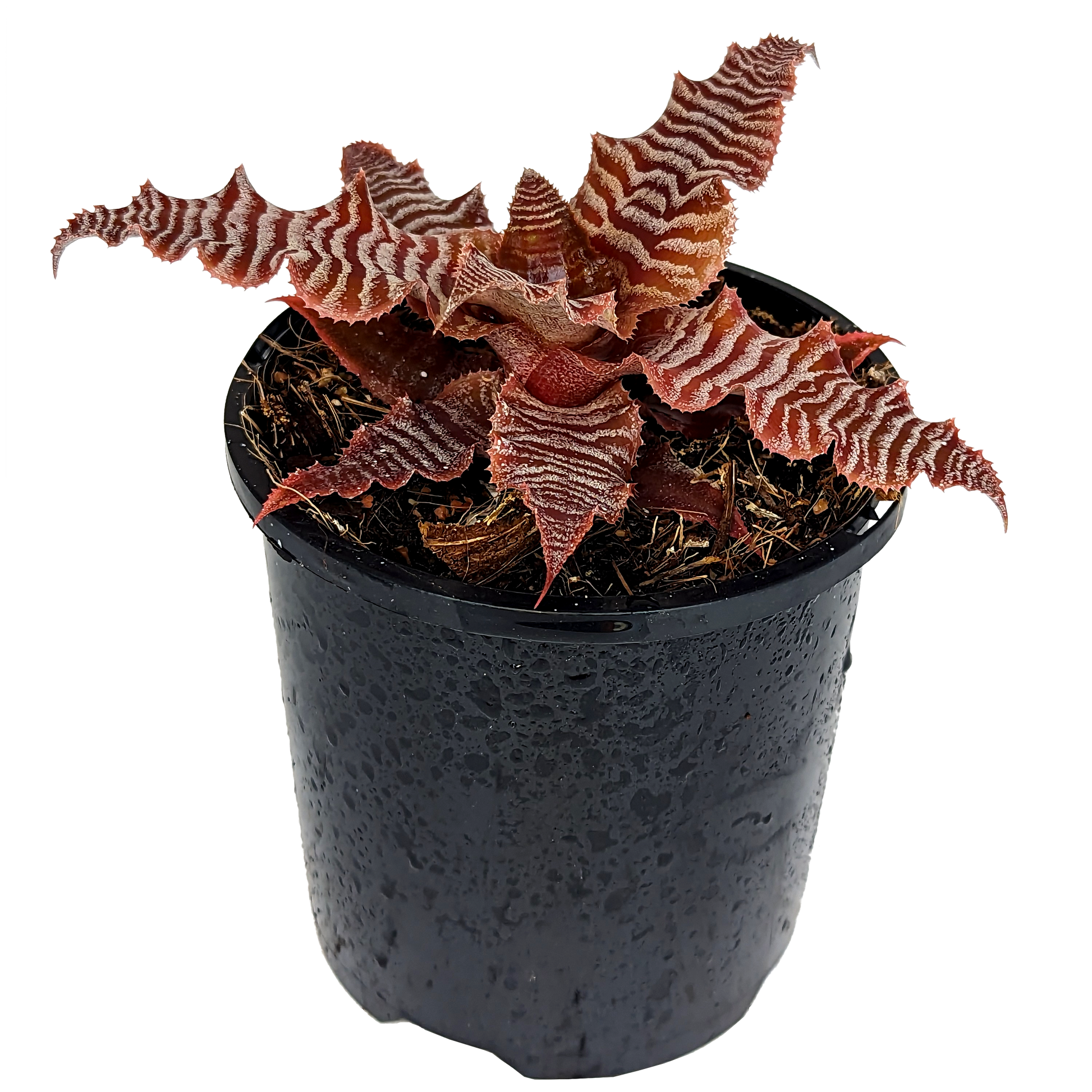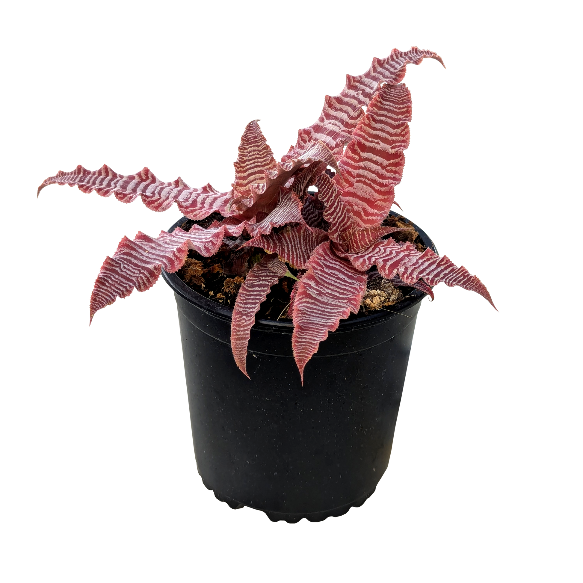 Cryptanthus zonatus, a member of the Bromeliad family, are a star-shaped plant featuring peachy-pink foliage with greyish-pink bands. They are a great indoor plant and will tolerate low light positions. Allowing this plant to dry out between watering will help enhance the foliage colour.